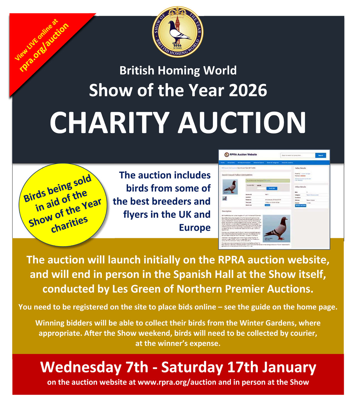 As with the 2025 Show, the BHW Show of the Year 2026 Charity Auction will launch initially online on the RPRA auction site, and will end in person in the Spanish Hall at the Show itself, conducted by Les Green of Northern Premier Auctions. The leading bids at the close of the online phase on Thursday 15th January (4.00pm) will serve as the opening bids of the in-person phase at the Show.